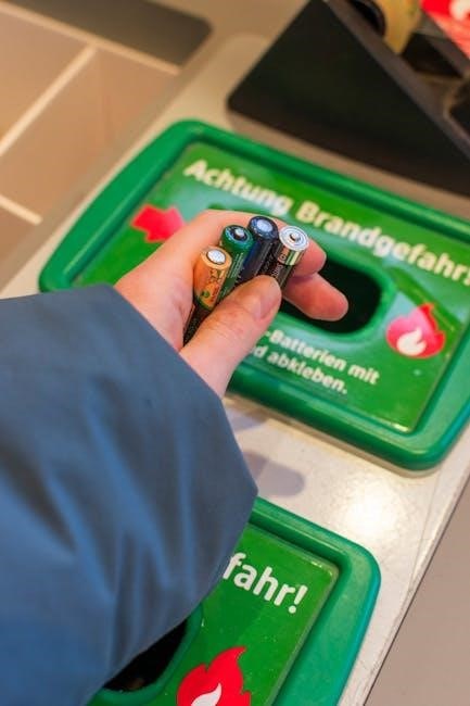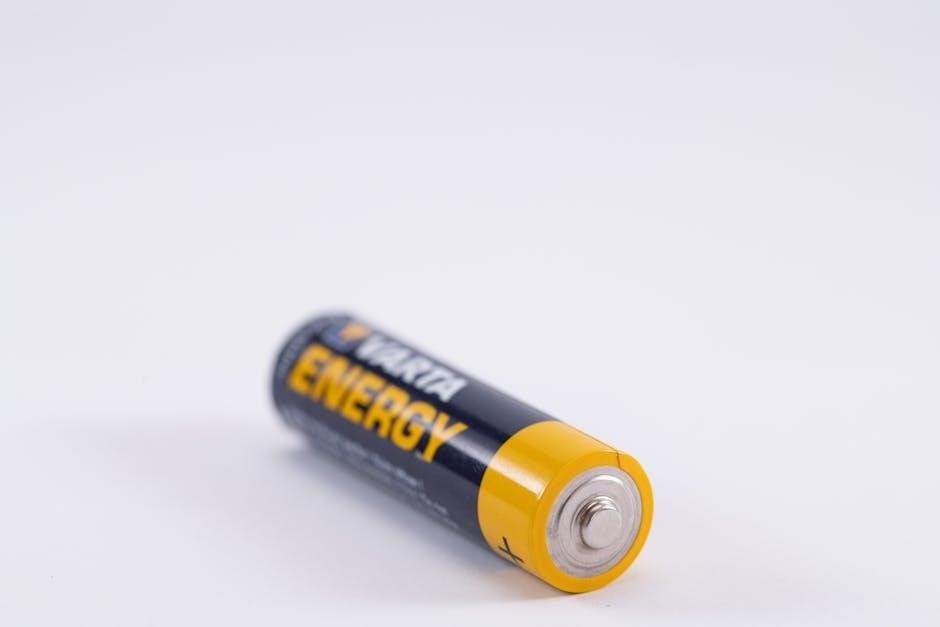 Inspect the battery regularly for any signs of physical damage‚ such as dents‚ cracks‚ or leaks. If damage is detected‚ discontinue use immediately and dispose of the battery responsibly. Never attempt to disassemble or modify the battery‚ as this can create hazardous conditions.